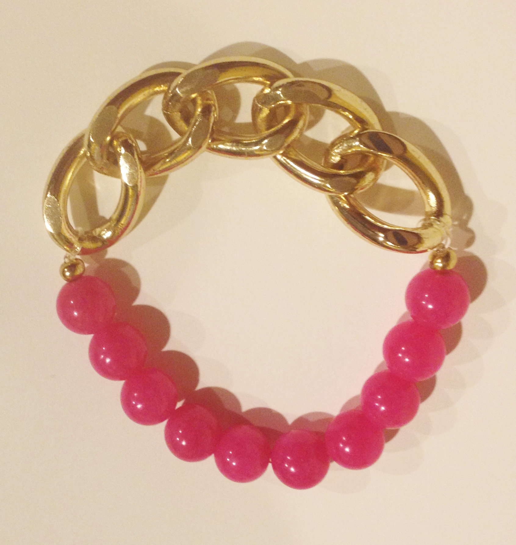 Gold chain Cuban links x Hot Pink semi-precious stone bracelet