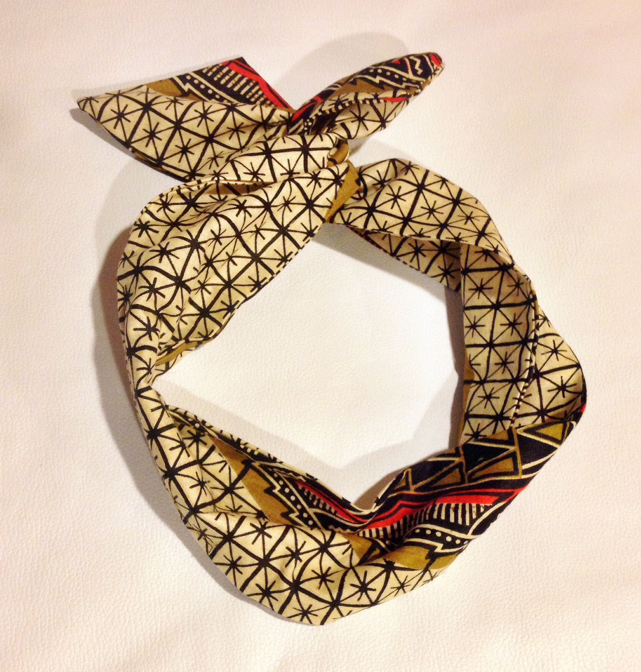 tan/gold/black/red tribal print wire hair tie. This is the cutest accessories dressing up your messy bun or lazy hair day ponytail!