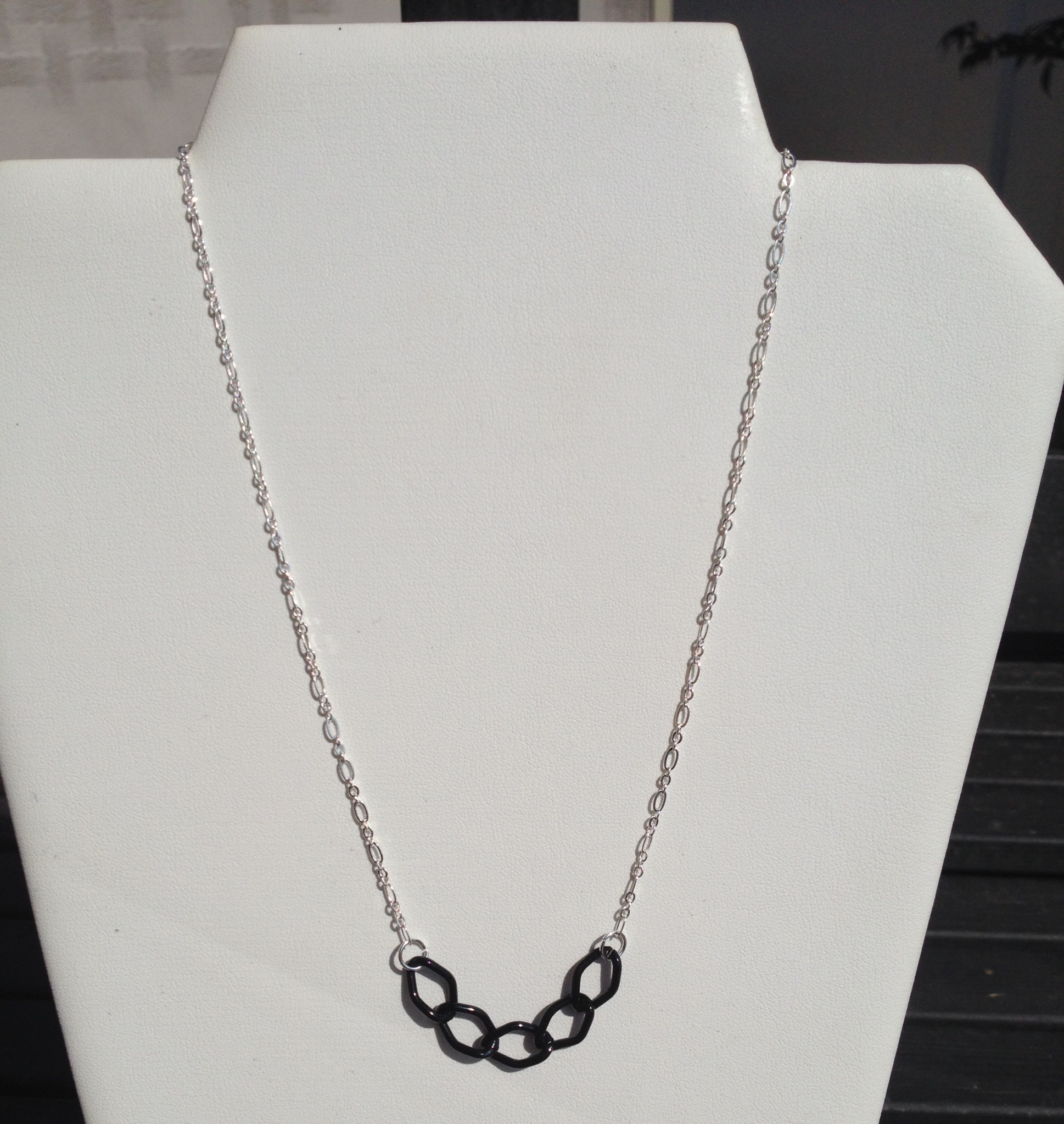 Materials - Silver plated and black acrylic chain